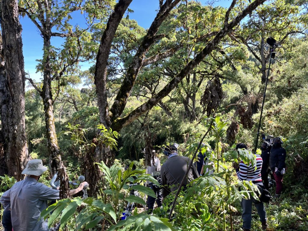 For the final day of filming, we travelled back down towards Nairobi, up into the mountains. None of us were aware that Nairobi is already at an elevation of about 6,000 feet. We had just that afternoon to scout the location we needed for the chimpanzee episode, but the area that we picked in photographs didn’t work when we saw it in reality. So after driving for six hours, we spent another four hours running up and down the mountain, and it was getting close to dark. We only found one spot that could work, and that was right up at the top. I think it was probably around a 10,000-foot elevation. The next day, when we were all filming there, a couple of our crew members, including the tutor for the kids and one of our focus pullers, had elevation sickness to the point where the tutor was throwing up and couldn’t work and the focus puller was shaking.